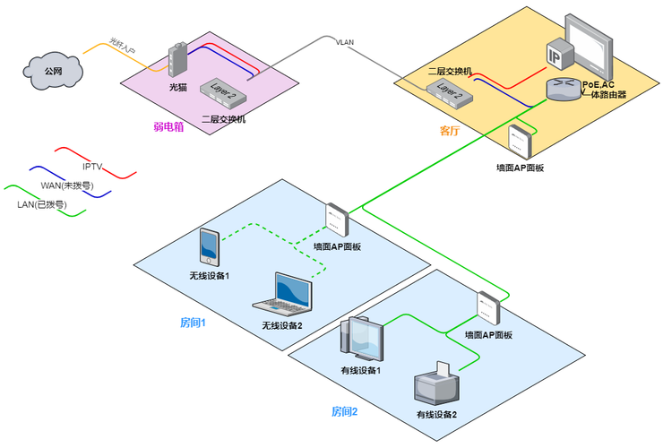 網(wǎng)絡(luò)布線拓?fù)鋱D是指在設(shè)計和實施網(wǎng)絡(luò)時,根據(jù)網(wǎng)絡(luò)需求和實際情況,將各個設(shè)備之間的連接方式和物理結(jié)構(gòu)以圖形的形式展現(xiàn)出來的一種工具。它不僅可以直觀地展示網(wǎng)絡(luò)結(jié)構(gòu),還能幫助網(wǎng)絡(luò)管理員進行故障排查和優(yōu)化網(wǎng)絡(luò)性能。以下是幾種常見的網(wǎng)絡(luò)布線拓?fù)鋱D方法:
